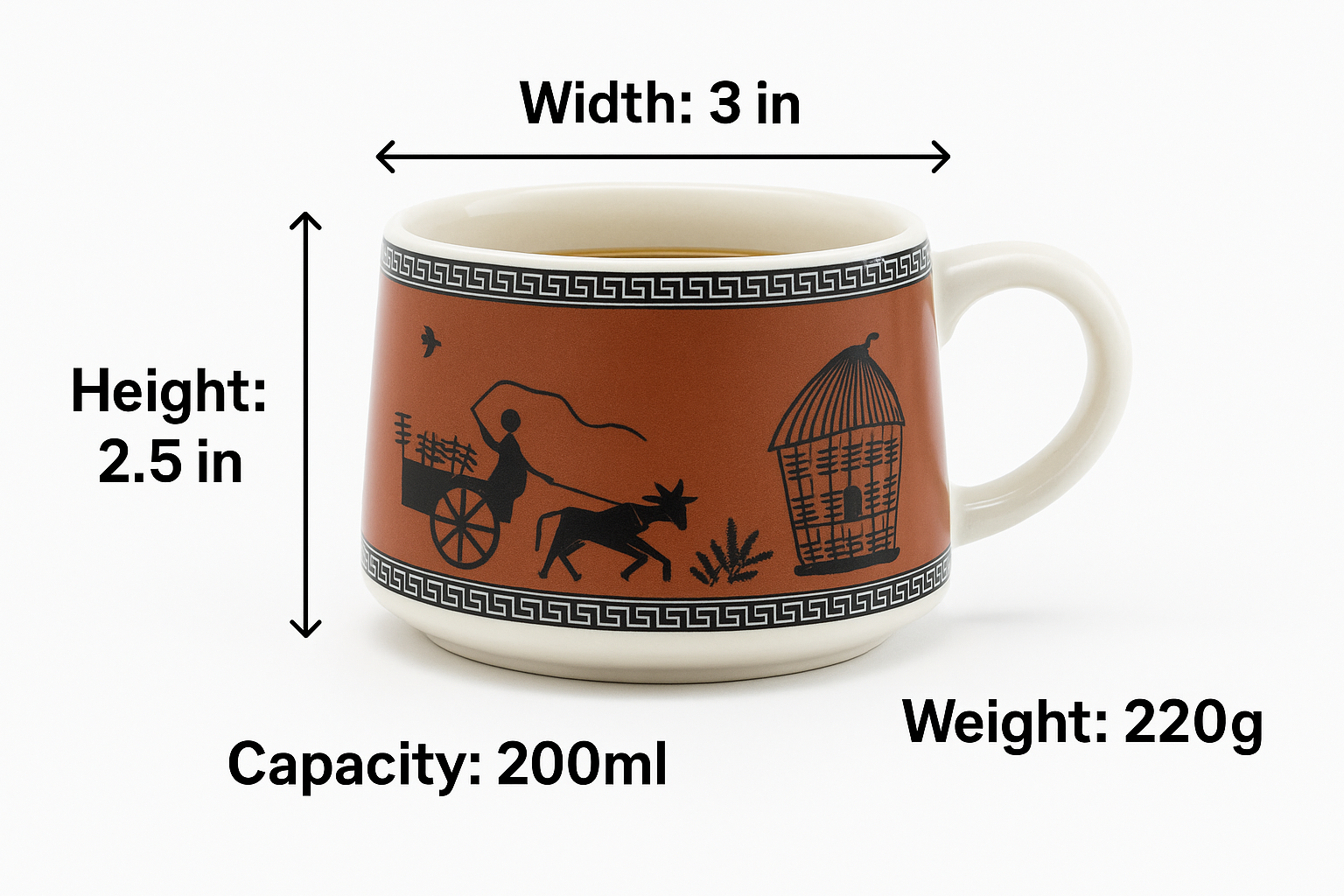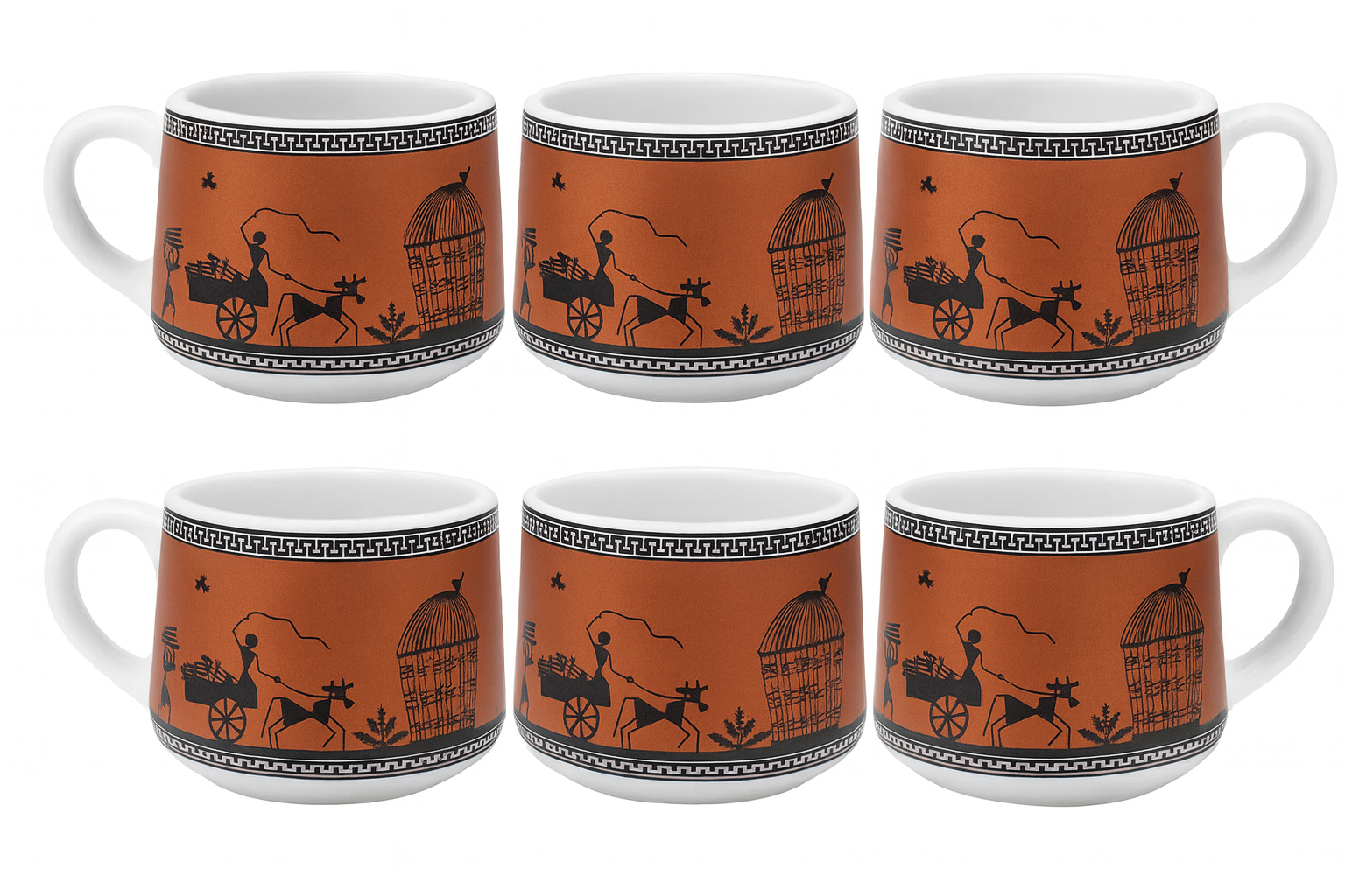 Premium quality ceramic coffee/tea cups (200 ml each) Brown & black tribal art design for elegant serving Microwave safe & dishwasher safe for daily convenience Durable, scratch-resistant, stackable, eco-friendly ceramic Ideal for home, office, restaurants & gifting